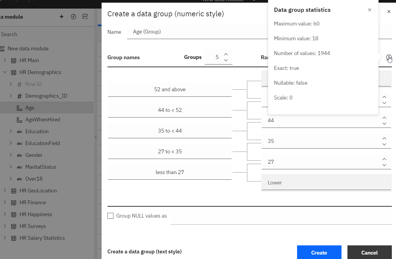Bins are already supported in Data Modules today - called Data Groups where statistical information is provided along with bins defined from them.... these can be adjusted.... Can't read from the request what more functionality is needed here? Thanks