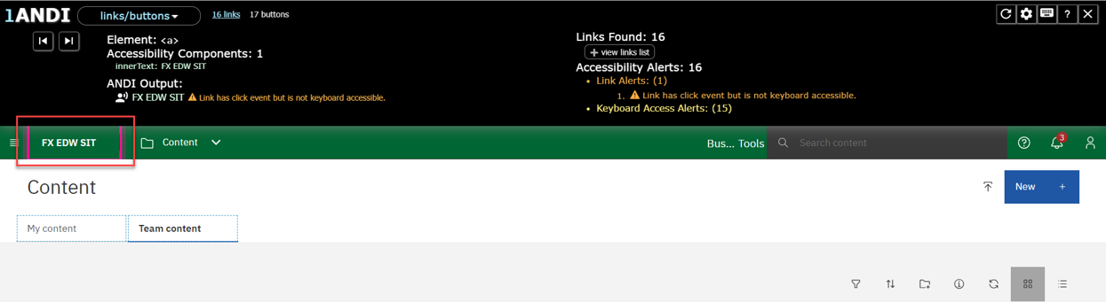 FX EDW SIT in the screenshot have Link click event in the backend, when accessing with mouse its working as expected.