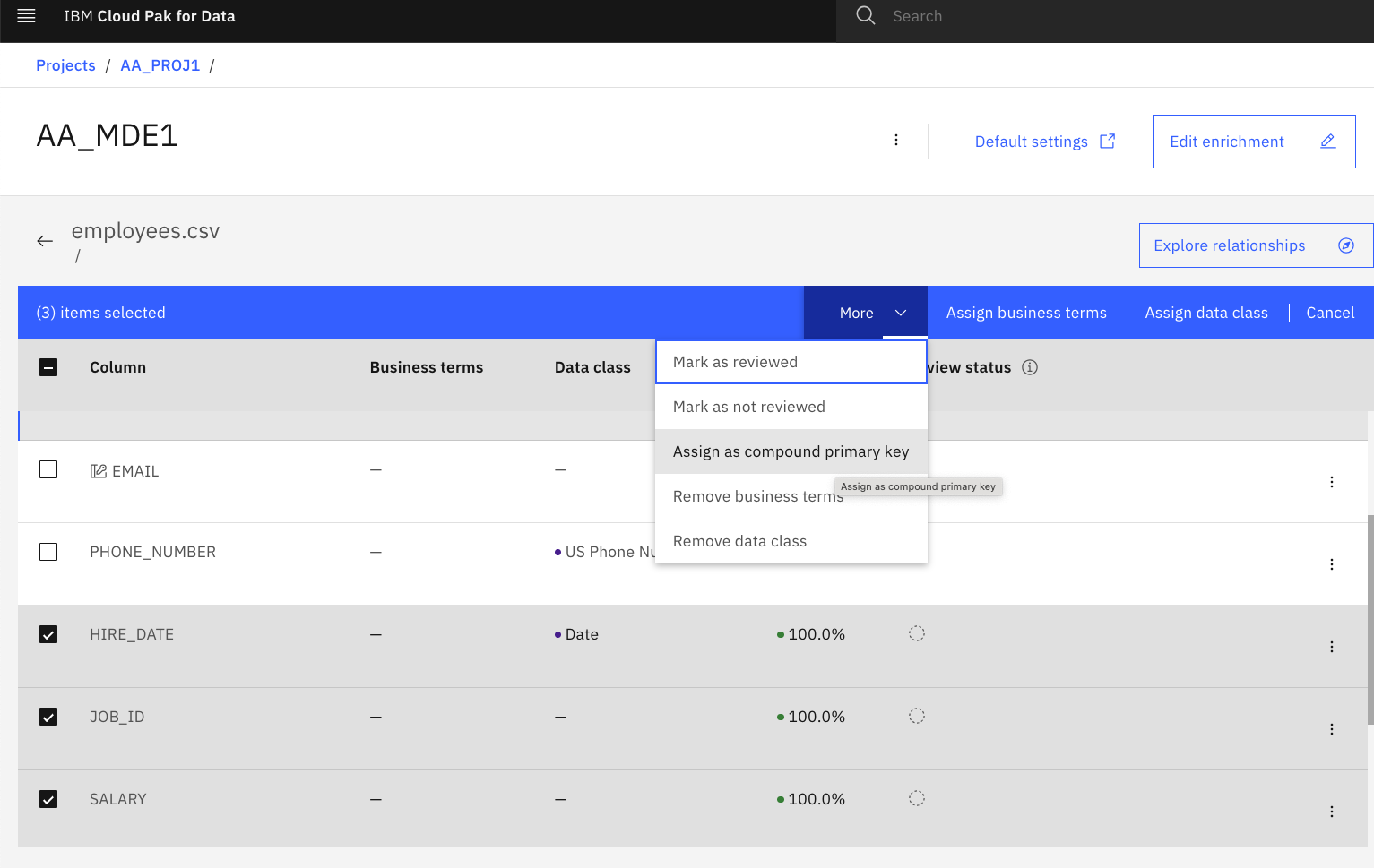 the system currently give an option to select any columns and mark them as a composite key. Is there anything else that you need?